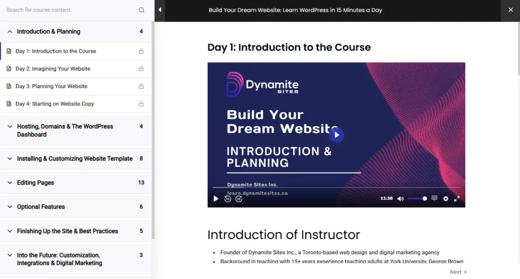 To make the course more beginner-friendly, I reorganized the entire structure and changed the title from “Get Your Branded Website: WordPress Fundamentals Course” to “Build Your Dream Website: Learn WordPress in 15 Minutes a Day.”