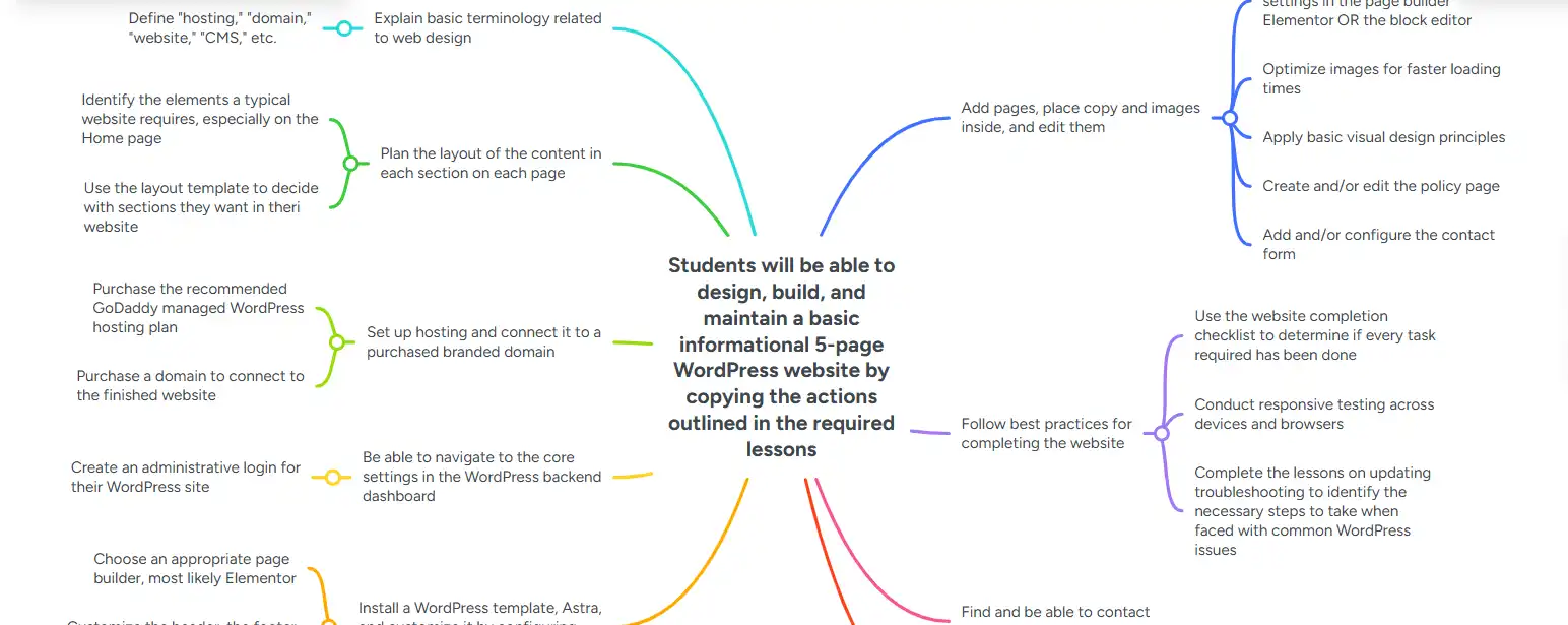 Using Bloom’s Taxonomy, I created an action map outlining the observable, measurable tasks a WordPress user must complete to build and maintain a basic website.